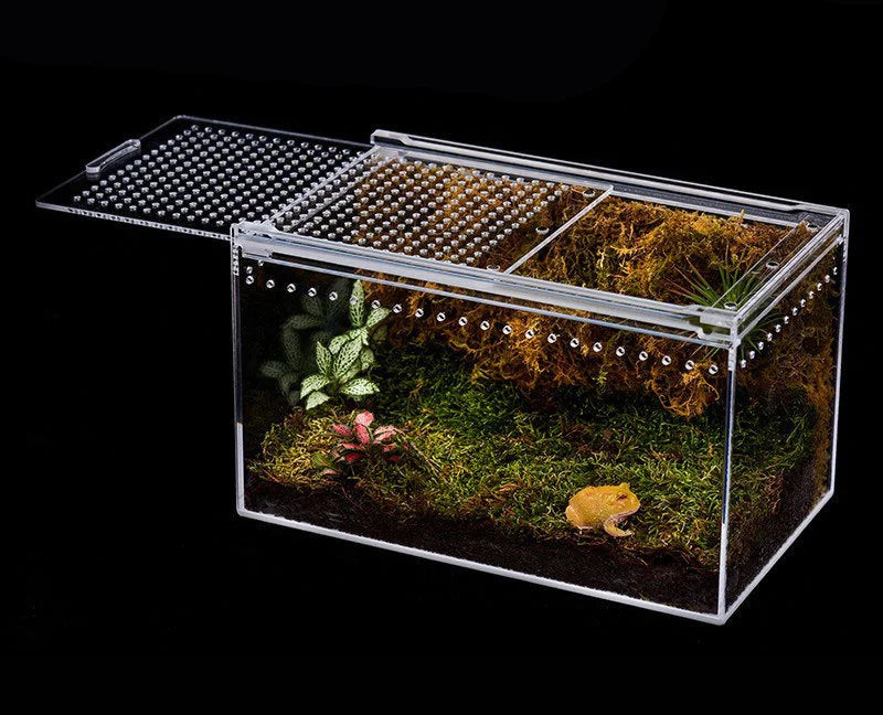 - Transparência que facilita a observação diária do comportamento do seu réptil ou anfíbio.